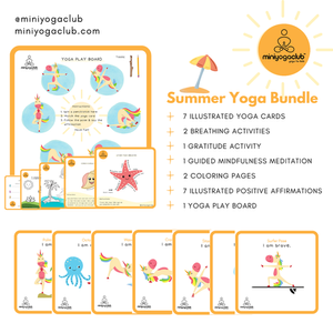 This summer-themed and beautifully illustrated yoga bundle is perfect for ages 2 and up. An amazing way to practice yoga and mindfulness without a screen.